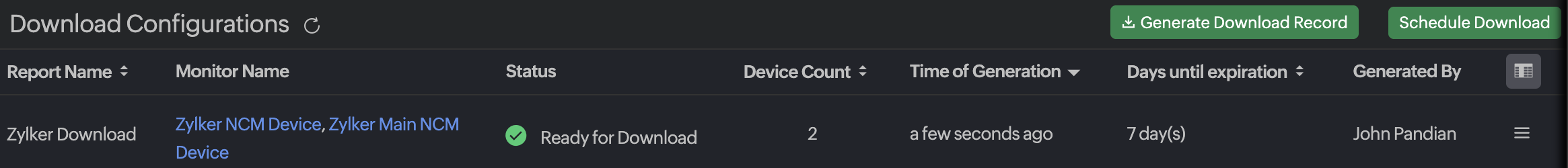 You can generate and download configuration reports for your devices to track and manage changes effectively.