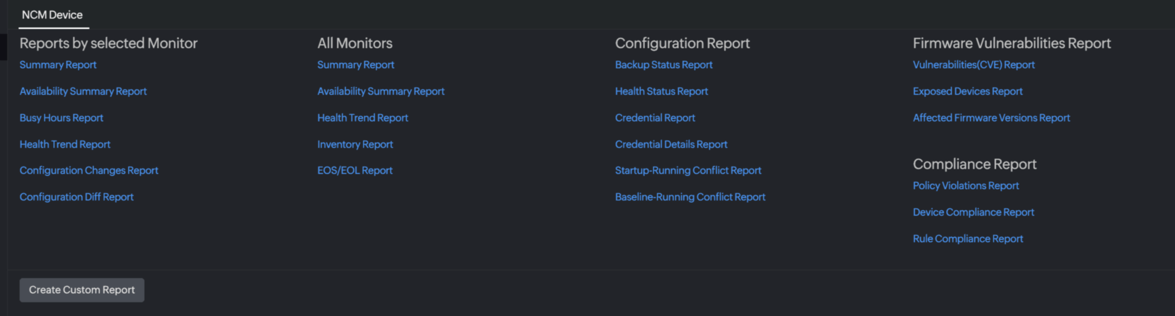 - Navigate to Reports > NCM Device > Firmware Vulnerabilities Report.