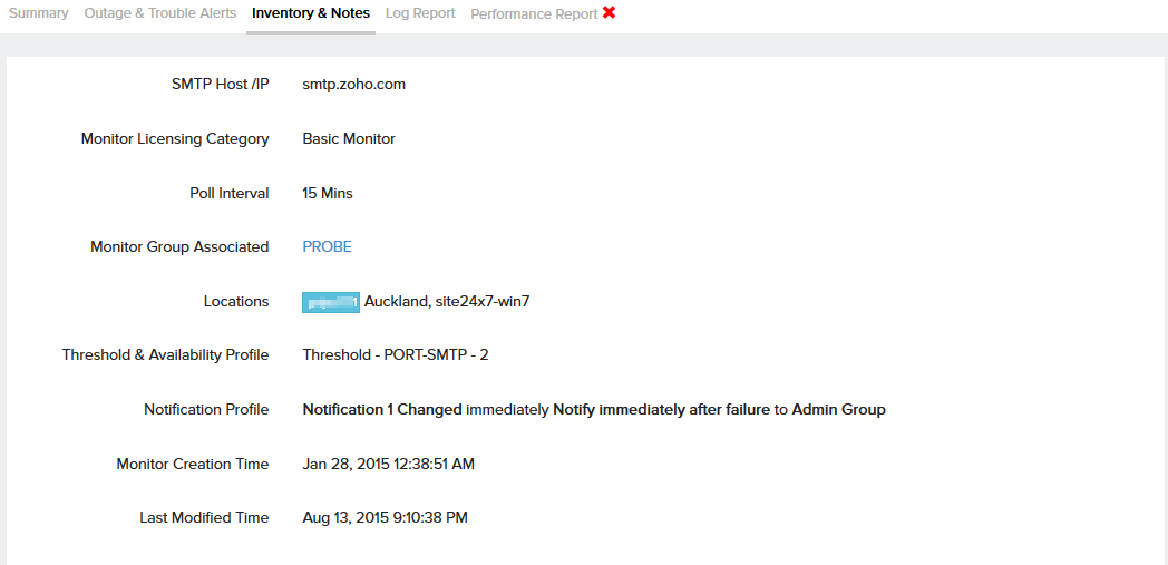 This section captures the basic monitor information and also its various configuration settings including polling locations, poll interval, licensing type, and more.